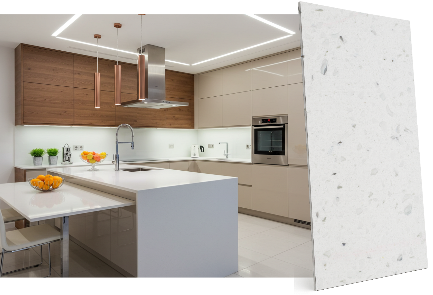 A linha Quartz expressa a harmonia entre natureza e técnica, resultando em superfícies de elegância atemporal e desempenho confiável. Produzido com tecnologia de ponta, oferece uniformidade e beleza singular, preservando um brilho constante que valoriza cada detalhe do ambiente.